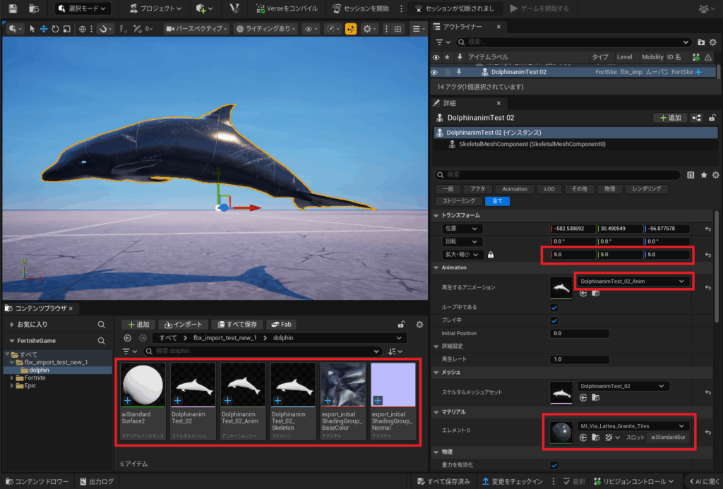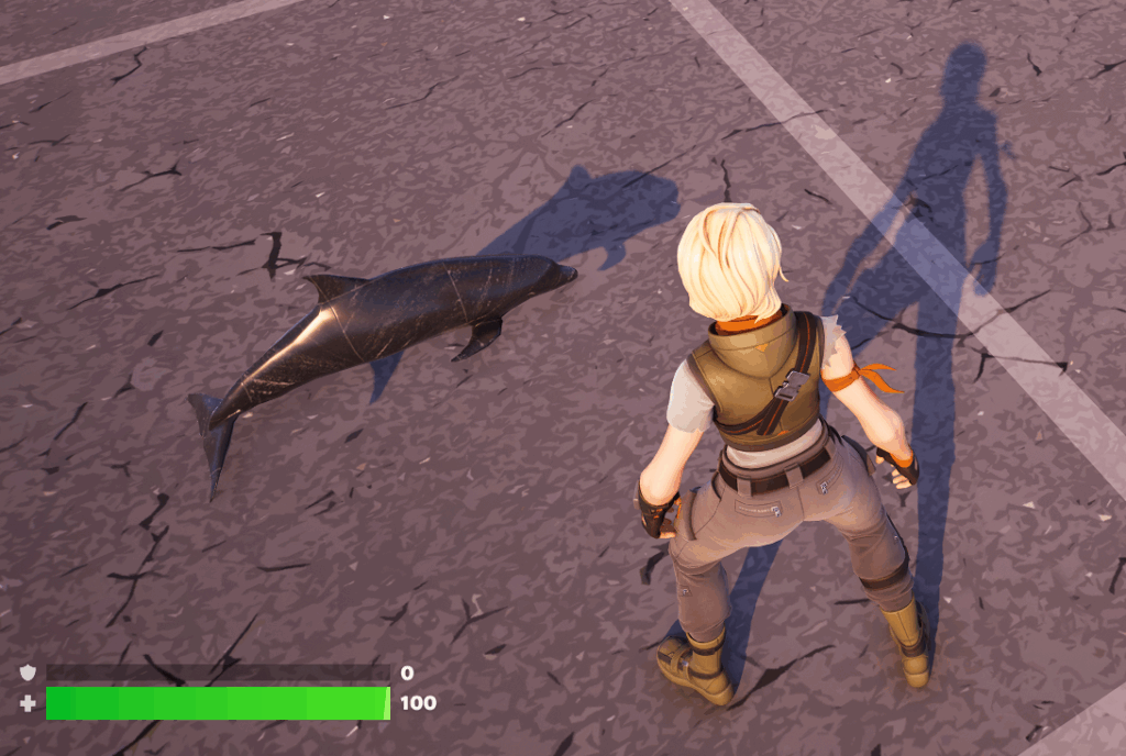 Fortniteで確認すると、Dolphinがきれいに泳いでいます(Fig.3 参照)。